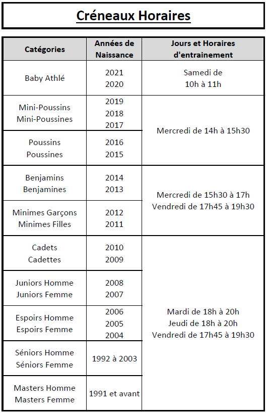 Créneaux Horaires 2025-26