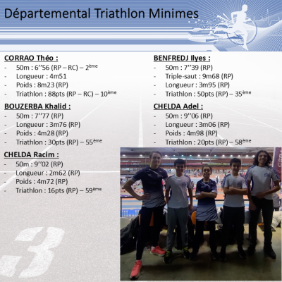 Résultats Départemental Triathlon Minimes à Lyon du 14 décembre 2024 :